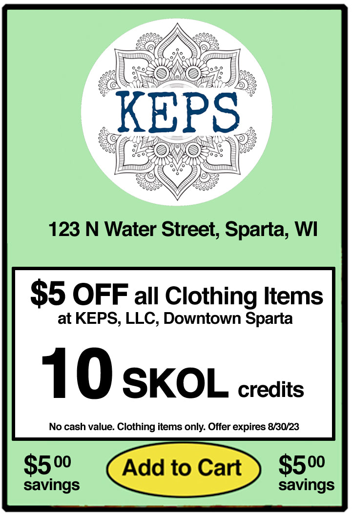 Voucher good for $5 OFF - Clothing Items only - at KEPS,LLC in Downtown Sparta